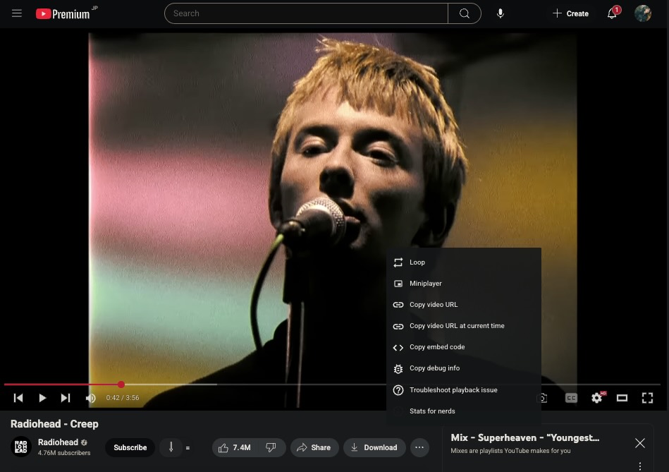 YouTube moved the “Miniplayer” button to above the “Copy video URL” button.
